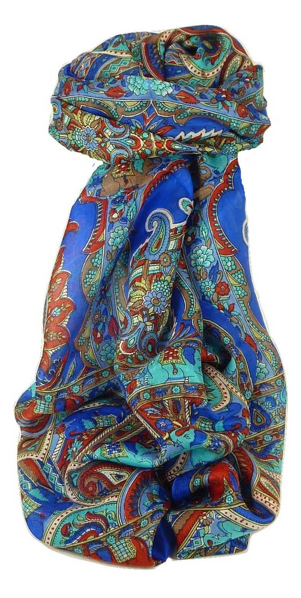 Elegant 100% prime quality silk scarves from our Classic Range measure 168 cm x 50 cm for our square scarves. Our scarves are spun, woven and hand printed by cottage industries in Kashmir. This classic, elegant scarf represents a chic interpretation of traditional Kashmir craftsmanship. Made from cultivated mulberry silk it is the finest and most expensive silk available. It is softer, rounder, finer and smoother than raw silk harvested from the wild. Our Classic Range silk scarves have a smooth, silky, luxurious feel. These elegant scarves are designed and made exclusively for Pashmina & Silk. You will not find them under any other brand. This classic accessory complements all formal or casual wear and its stylish design has a natural look making it a very versatile accessory.
