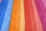 Hecho de 100% seda de mora, que es más suave, más redondo, más fino y más suave que la seda prima cosechada en el medio silvestre. Las pequeñas irregularidades naturales en el tejido y el hilado añaden interés y carácter a la bufanda. Nuestras bufandas paleta Rainbow tienen una sedosa, tacto suave, lujoso. Usted no los encontrará en ninguna otra marca.