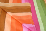 Ellos se hilan y tejen por los trabajadores artesanales en telares de mano y mano teñidos para formar rayas en brillantes colores complementarios y contrastantes. Este accesorio clásico complementa toda ropa formal o casual. La paleta de colores complementarios en cada bufanda lo convierte en un accesorio versátil para muchos trajes diferentes"Momme" (mm) es una medida del peso de la tela de seda.