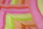 Realizzata in 100% seta di gelso, è più morbido, più rotondo, più sottile e più liscio di seta grezza raccolto dal loro ambiente naturale. il piccolo irregolarità naturali nella trama e filo aggiungono interesse e carattere alla sciarpa. Le nostre sciarpe tavolozza arcobaleno hanno una superficie liscia, setosa, sensazione di lusso. Non li troverete in qualsiasi altro marchio. Essi sono filate e tessute da lavoratori artigianali su telai a mano e tinto a mano per formare strisce in brillanti colori complementari e contrastanti.