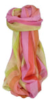 Questa sciarpa lunga della seta di gelso di 100% misura 45 cm x 170 cm ha un design insolito ed è individualmente tinti a mano e realizzato da industrie di cottage nel Kashmir. Il progetto rende omaggio a pittori più famosi dell'India e le tavolozze di colori vivaci che definiscono la loro arte.