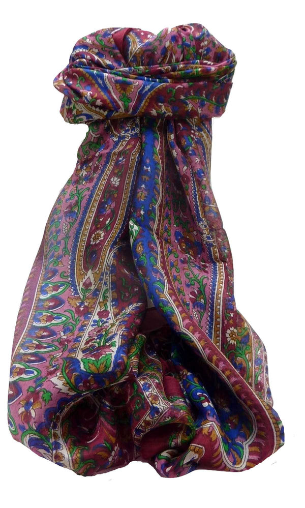 Tradizionale Sciarpa Longa di Seta Amrindar Wine di Pashmina & Silk