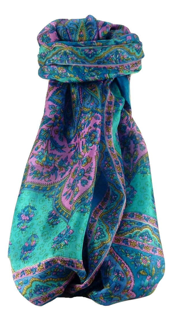 Tradizionale Sciarpa Longa di Seta Cauver Aqua di Pashmina & Silk
