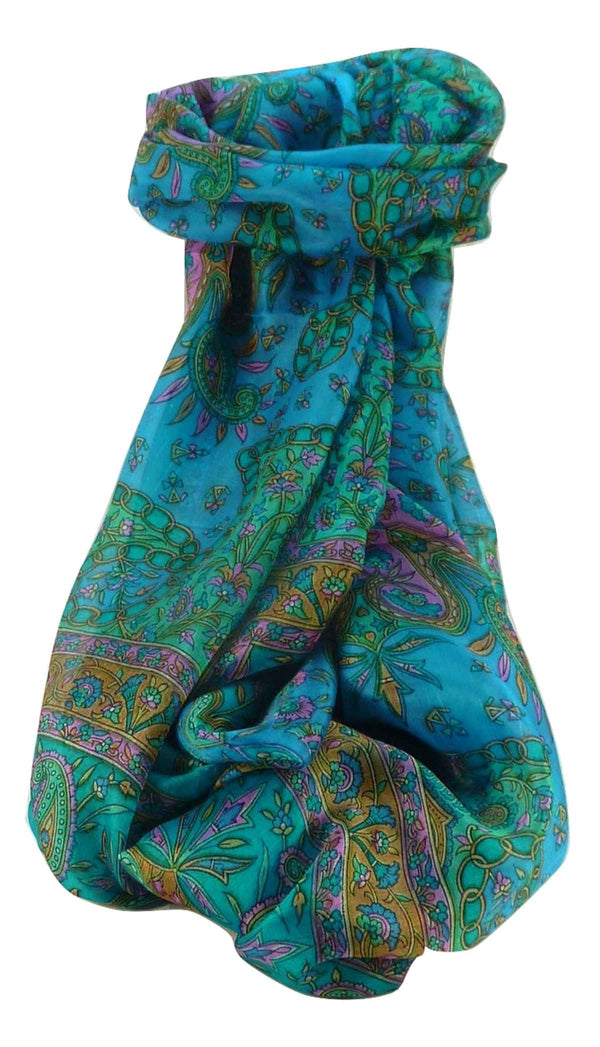 Tradizionale Sciarpa Longa di Seta Sarayu Aqua di Pashmina & Silk