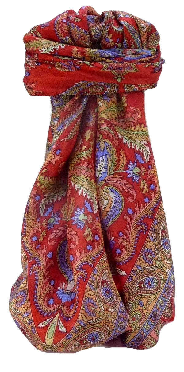 Tradizionale Sciarpa Quadrata di Seta Sunil Scarlet di Pashmina & Silk