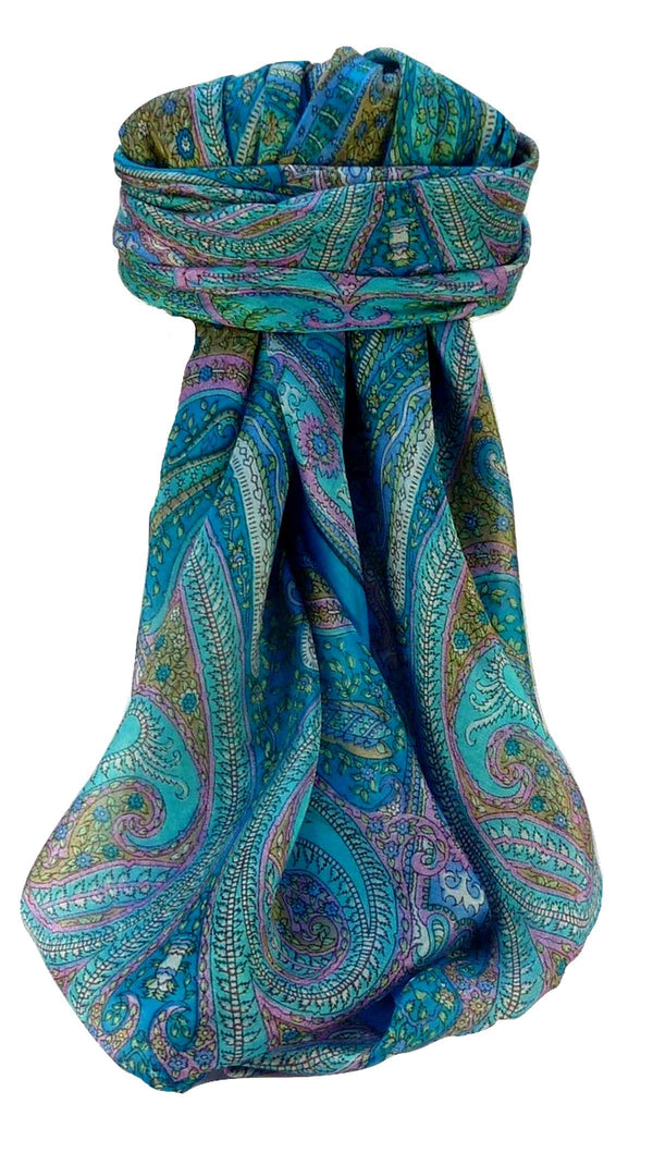 Tradizionale Sciarpa Quadrata di Seta Vayvia Aqua di Pashmina & Silk