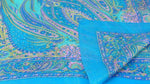 Tradizionale Sciarpa Quadrata di Seta Zayd Aqua di Pashmina & Silk