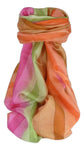 This 100% mulberry silk long scarf measuring 170 cm x 45 cm has an unusual design and is individually hand dyed and crafted by cottage industries in Kashmir. Made from 100% mulberry silk, it is softer, rounder, finer and smoother than raw silk harvested from the wild. The tiny natural irregularities in the weave and yarn add interest and character to the scarf.