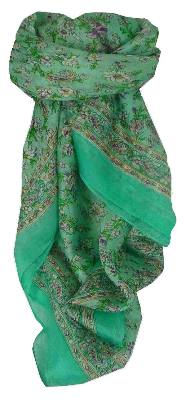 Mulberry Silk Traditional Square Scarf Ela Aquamarine by Pashmina & Silk