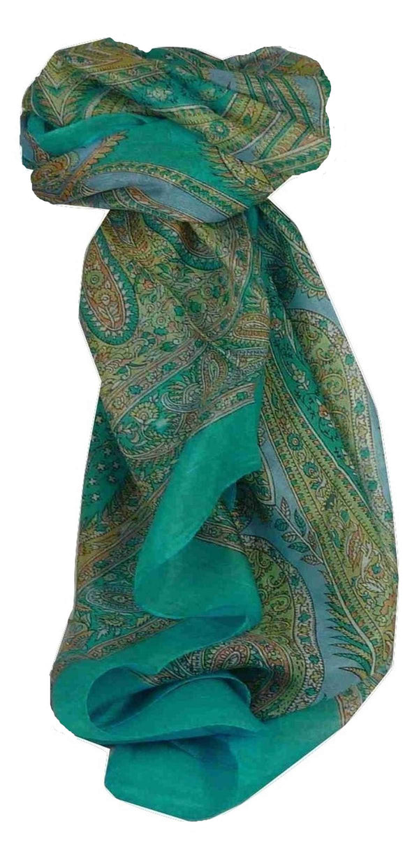 Mulberry Silk Traditional Square Scarf Fulki Aquamarine by Pashmina & Silk
