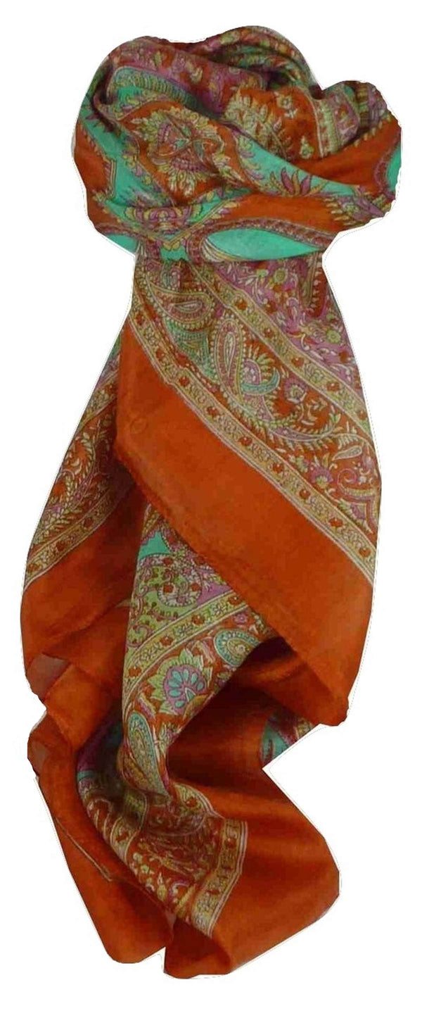 Mulberry Silk Traditional Square Scarf Fulki Terracotta by Pashmina & Silk