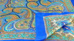 Mulberry Silk Traditional Square Scarf Kadri Blue by Pashmina & Silk